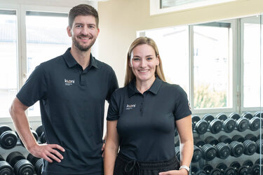 Rahel: Es ist schön, das Vertrauen unserer Eltern und auch unserer Mitarbeitenden zu spüren. Zugleich war es auch nicht immer selbstverständlich, dass wir in unserem Elternbetrieb Fuss fassen würden. Endgültig hat es uns in den zwei Jahren mit Corona «den Ärmel reingenommen»: Wir haben alles daran gesetzt, dass wir für unsere Mitglieder und Patient:innen weiterhin einen Beitrag zu ihrer Lebensqualität bieten können und haben nie in Erwägung gezogen, den Personalbestand zu reduzieren. Wir haben stets auf unsere gesundheitspolitische Aufgabe aufmerksam gemacht. All das weckt in einem dann schon das Herzblut und hat uns hierhin gebracht, wo wir heute stehen: Ich bin zuständig für das Personalwesen und die administrative Leitung der Physiotherapie. David leitet seit knapp zwei Jahren den Trainingsbereich und übernimmt neu die Geschäftsführung. In dieser Funktion bin ich seine Stellvertretung.